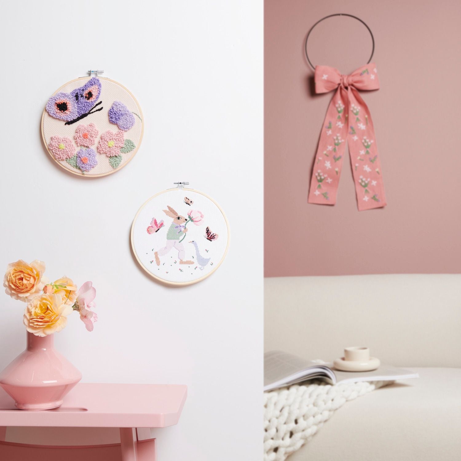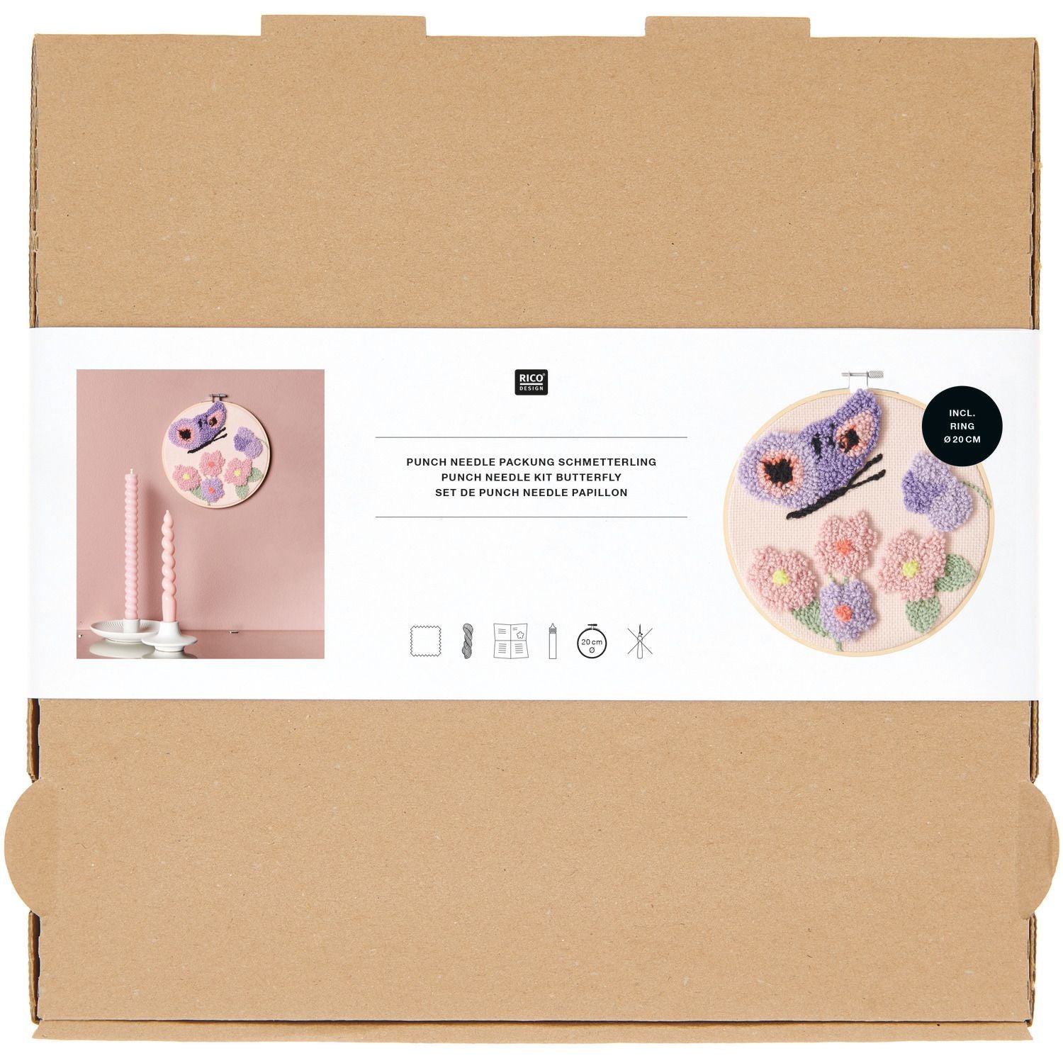 Het borduurpakket bevat de materialen die nodig zijn om het lentemotief te maken: een stuk monnikstof, een borduurring, kelimwol, textiellijm en instructies. Je hebt echter ook een punchnaald nodig, want die is niet inbegrepen. Het motief toont een vlinder omringd door mooie bloemen en wordt gepresenteerd als een decoratieve afbeelding in de borduurring. Het levendige ontwerp past perfect in elke woonomgeving en trekt gegarandeerd ieders aandacht.