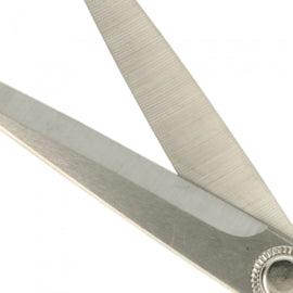 De stevige schaar heeft micro vertanding, waardoor het gemakkelijk precies en veilig door stof kan glijden. De schaar is 21 cm lang.